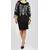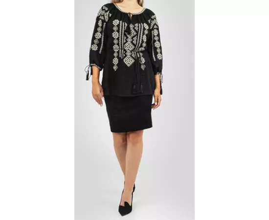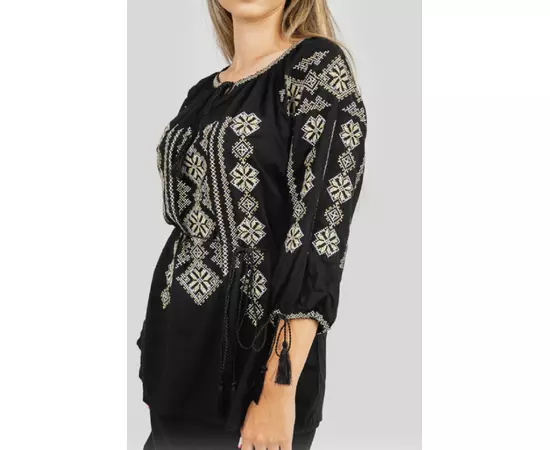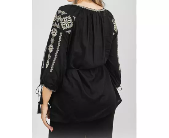 Bluza tip ie neagra din viscoza cu maneca 3/4 si motiv geometric auriu.