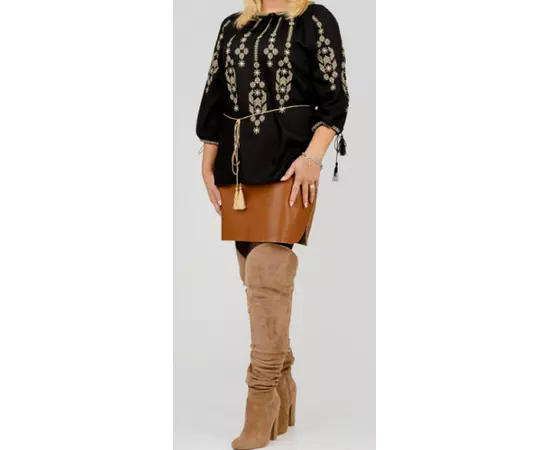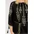 Bluza tip ie neagra din viscoza cu maneca 3/4 si motiv geometric auriu.