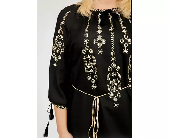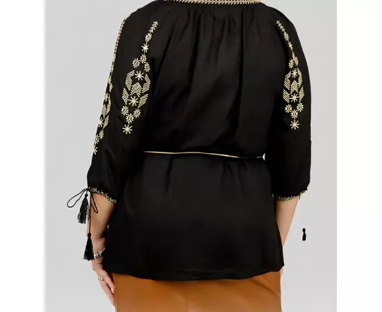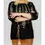 Bluza tip ie neagra din viscoza cu maneca 3/4 si motiv geometric auriu.