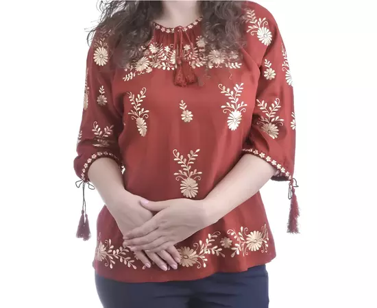 Bluza tip ie rosie din viscoza cu maneca 3/4 si motiv auriu