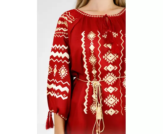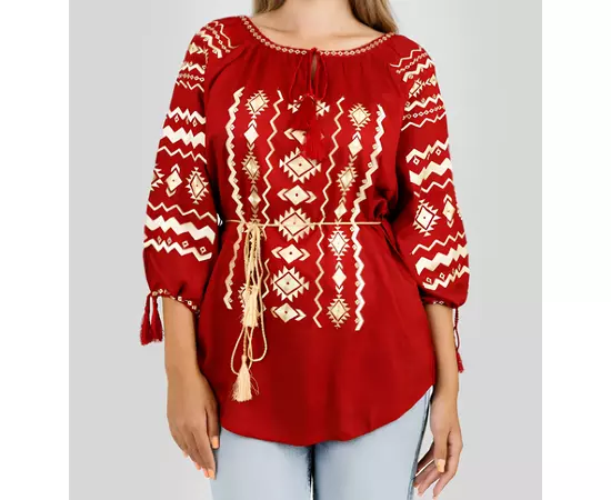 Bluza tip ie rosie din viscoza cu maneca 3/4 si motiv geometric auriu.