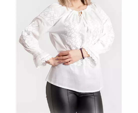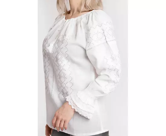 Bluza Tip Ie Alba cu Motiv Floral Alb - BMG33