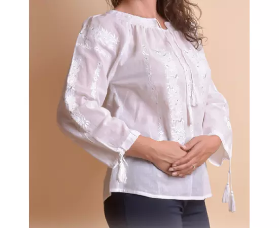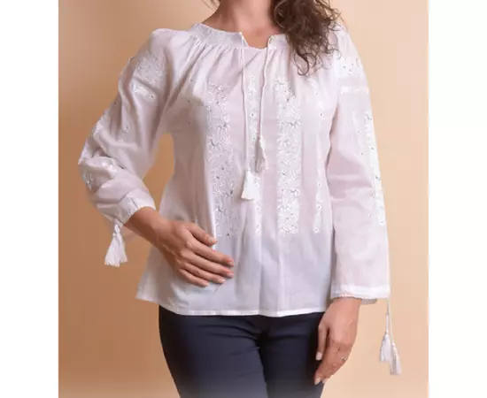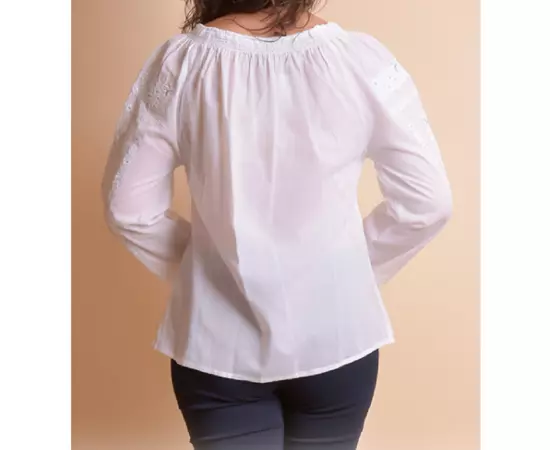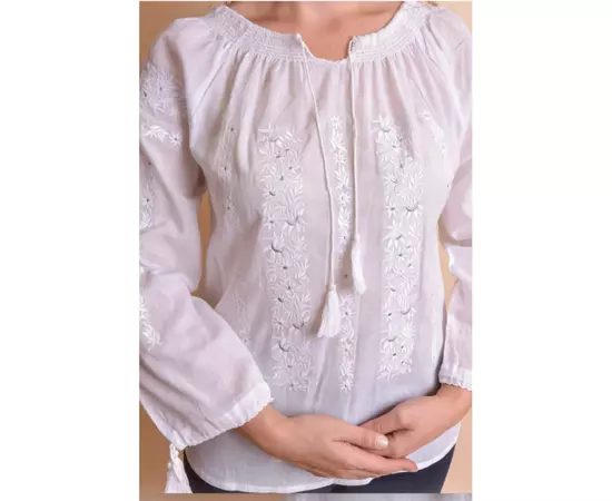Bluza Tip Ie Alba cu Motiv Floral Alb - BMG71