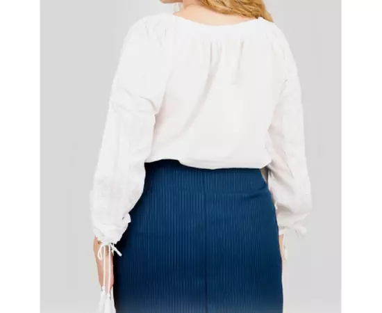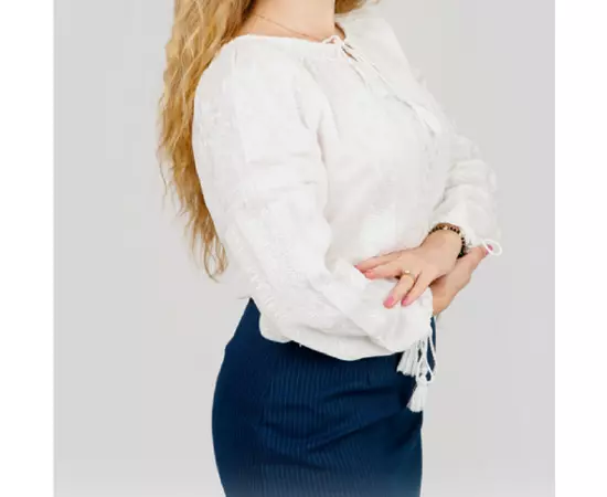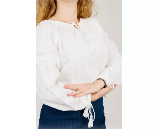 Bluza Tip Ie Alba cu Motiv Floral Alb - BMG82