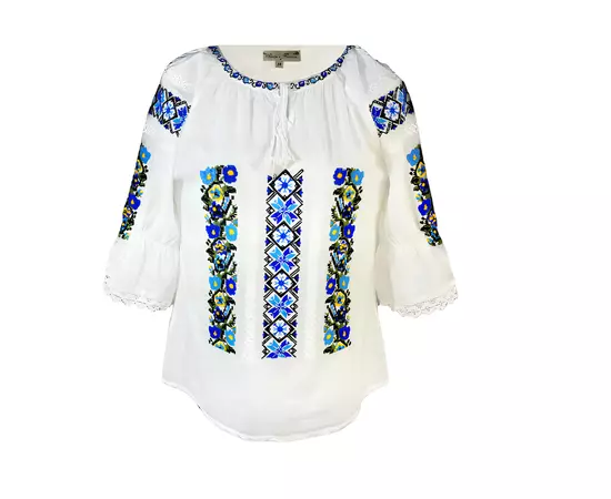 Bluza Tip Ie Alba cu Motiv Floral Albastru - BMG37