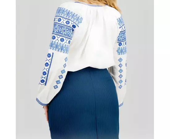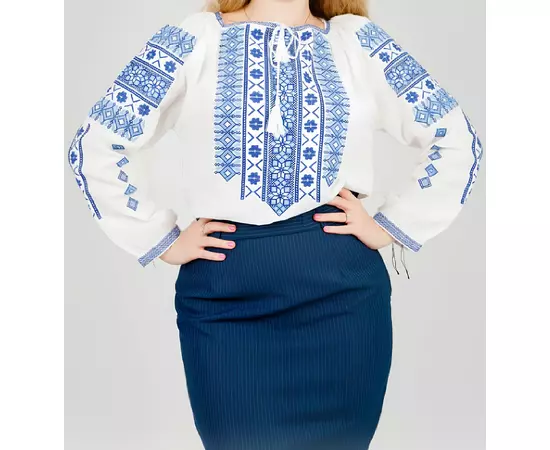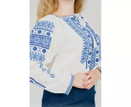 Bluza Tip Ie Alba cu Motiv Floral Albastru - BMG81