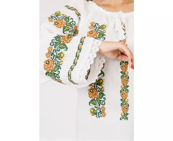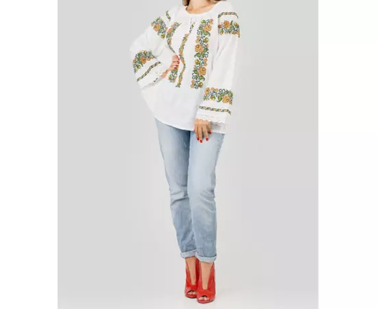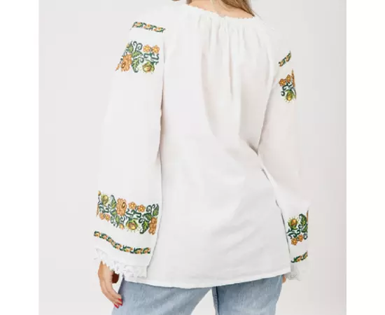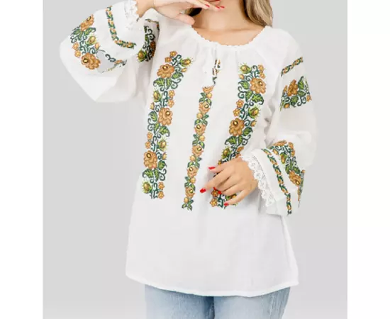 Bluza Tip Ie Alba cu Motiv Floral Crem - BMG80