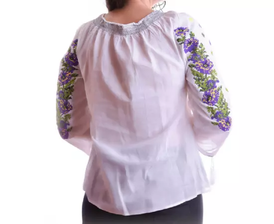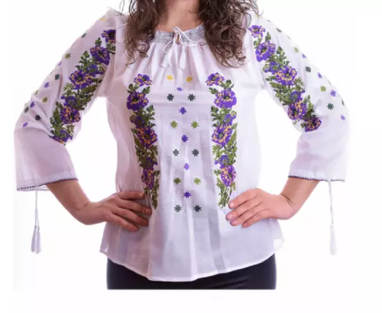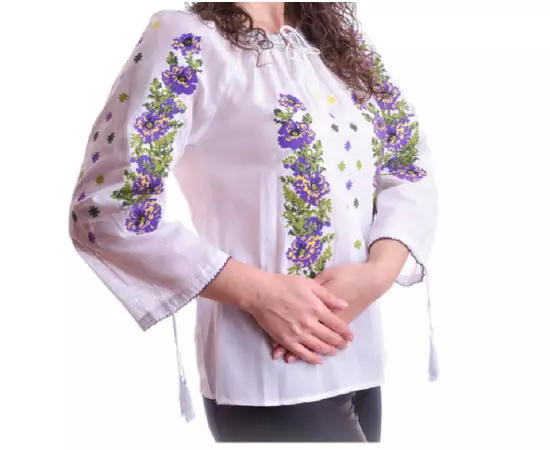 Bluza Tip Ie Alba cu Motiv Floral Mov - BMG52