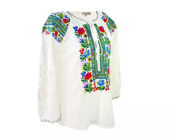 Bluza Tip Ie Alba cu Motiv Floral Multicolor - BMG09