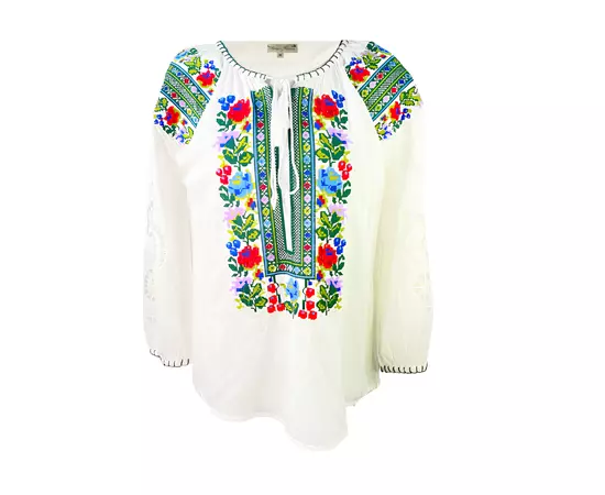 Bluza Tip Ie Alba cu Motiv Floral Multicolor - BMG09