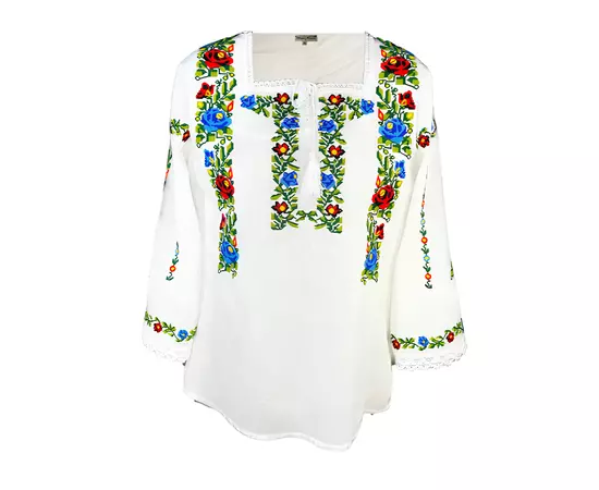 Bluza Tip Ie Alba cu Motiv Floral Multicolor - BMG26