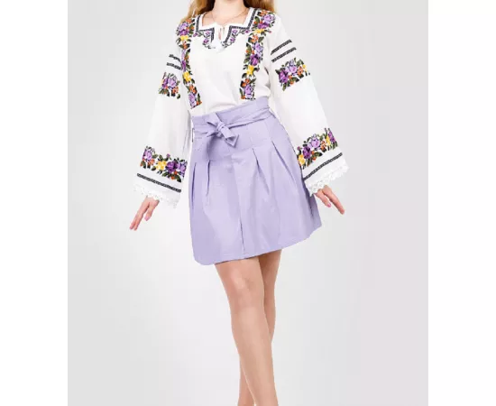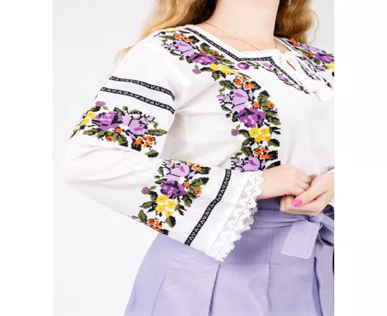 Bluza Tip Ie Alba cu Motiv Floral Multicolor - BMG30