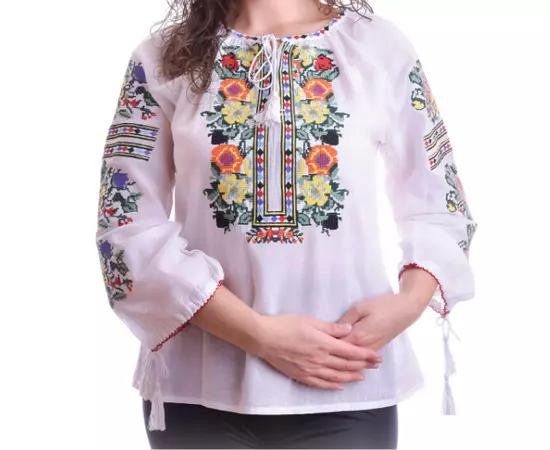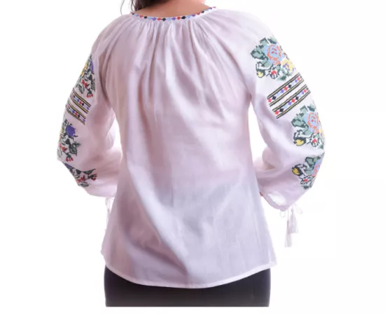 Bluza Tip Ie Alba cu Motiv Floral Multicolor - BMG38