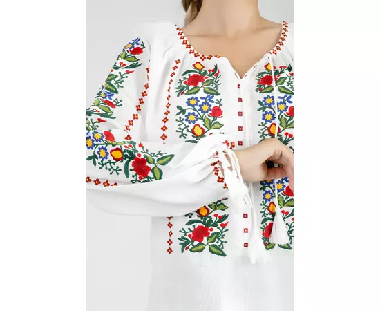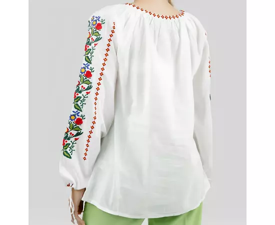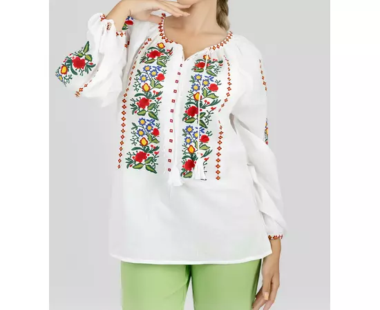Bluza Tip Ie Alba cu Motiv Floral Multicolor - BMG46