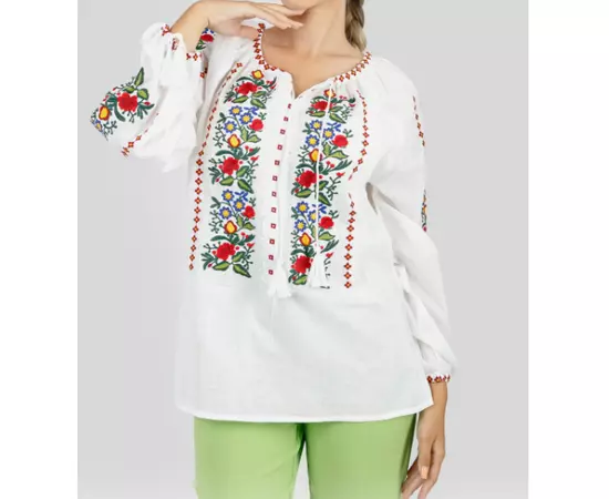 Bluza Tip Ie Alba cu Motiv Floral Multicolor - BMG46