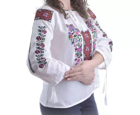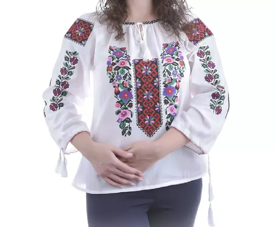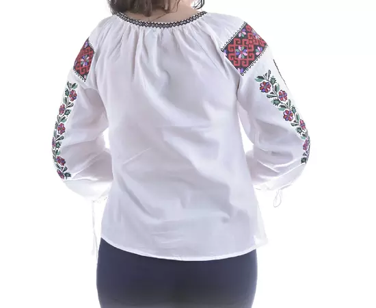 Bluza Tip Ie Alba cu Motiv Floral Multicolor - BMG69