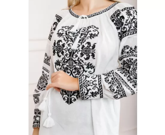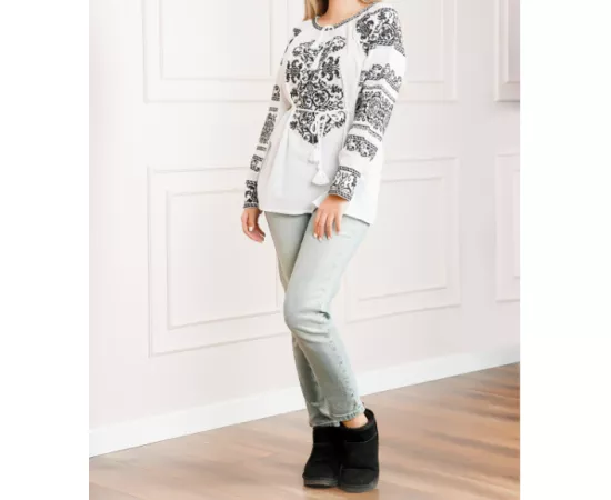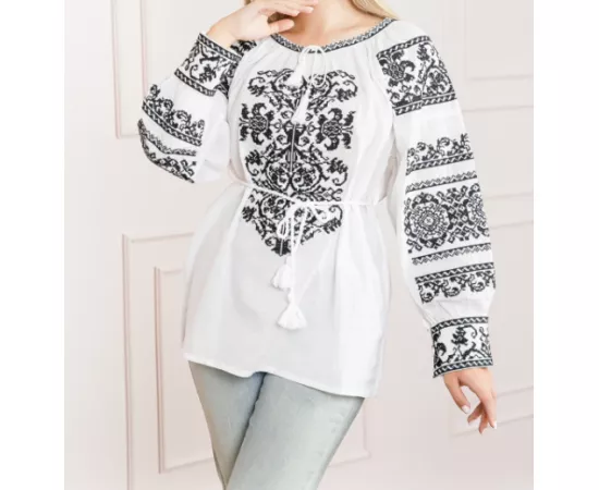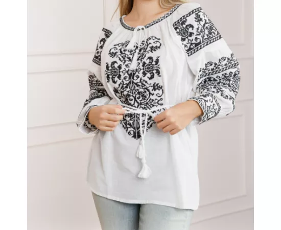 Bluza Tip Ie Alba cu Motiv Floral Negru - BMG34