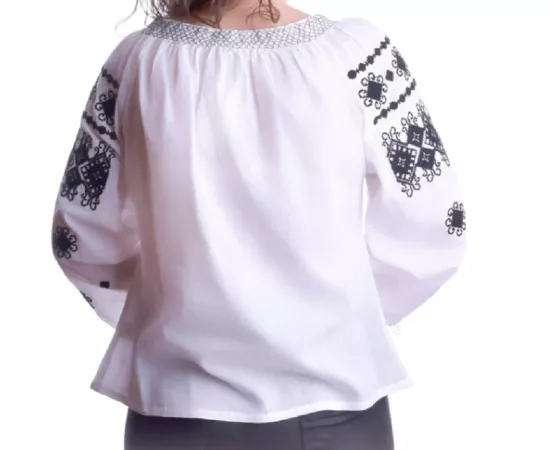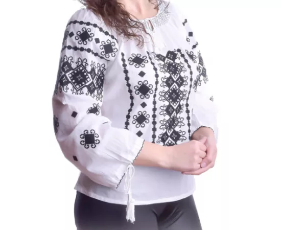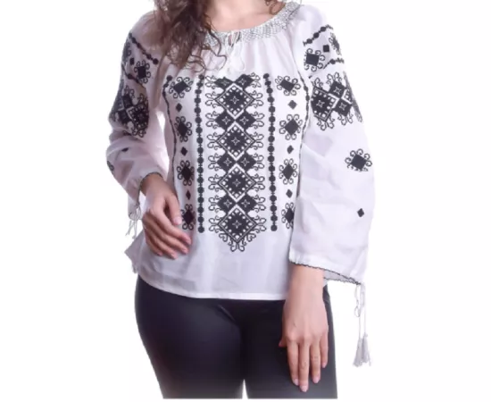 Bluza Tip Ie Alba cu Motiv Floral Negru - BMG35