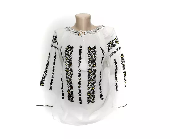 Bluza Tip Ie Alba cu Motiv Floral Negru - BMG72