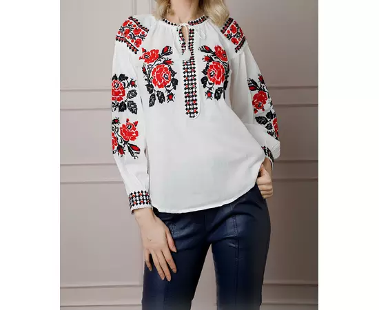 Bluza Tip Ie Alba cu Motiv Floral Rosu- BMG18