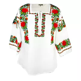Bluza Tip Ie Alba cu Motiv Floral Rosu - BMG25