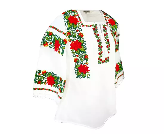 Bluza Tip Ie Alba cu Motiv Floral Rosu - BMG25