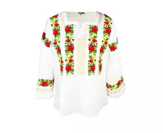 Bluza Tip Ie Alba cu Motiv Floral Rosu - BMG27