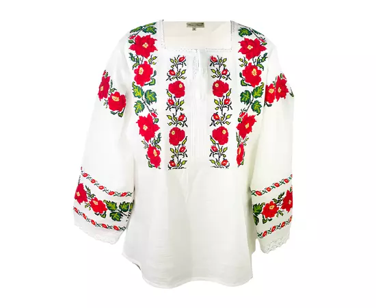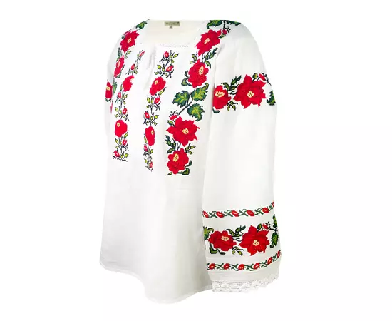 Bluza Tip Ie Alba cu Motiv Floral Rosu - BMG29