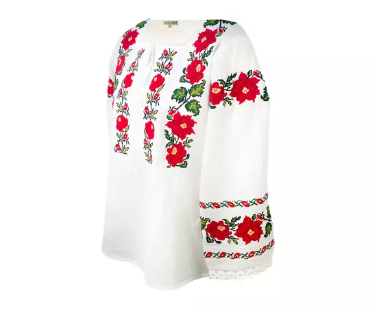 Bluza Tip Ie Alba cu Motiv Floral Rosu - BMG49