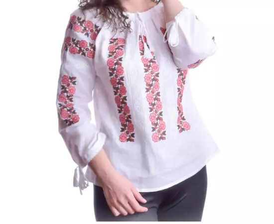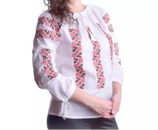 Bluza Tip Ie Alba cu Motiv Floral Roz - BMG65