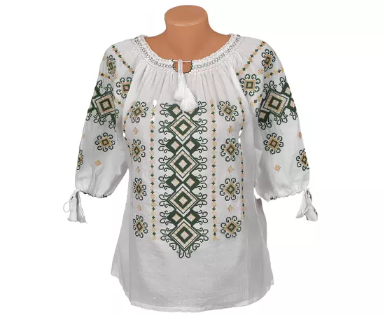 Bluza Tip Ie Alba cu Motiv Floral Verde - BMG39