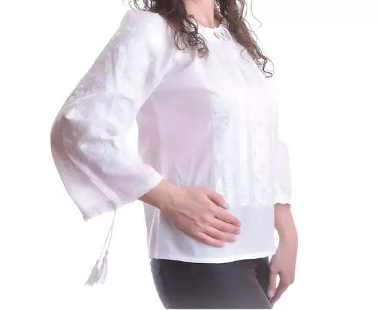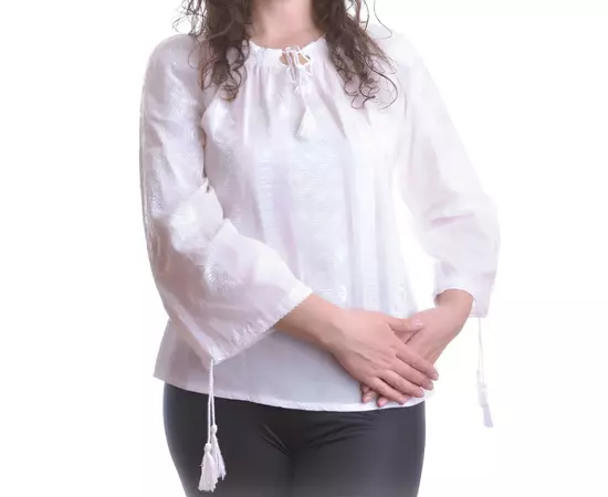 Bluza Tip Ie Alba cu Motiv Geometric Alb - BMG78