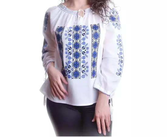 Bluza Tip Ie Alba cu Moti Geometric Albastru