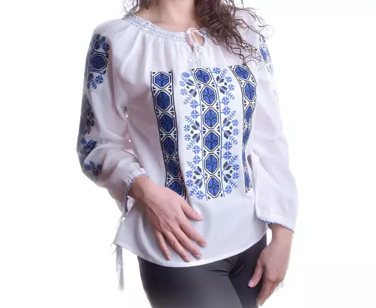 Bluza Tip Ie Alba cu Motiv Geometric Albastru - BMG63