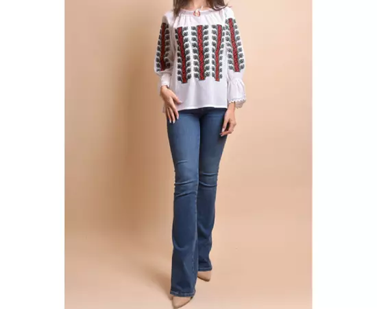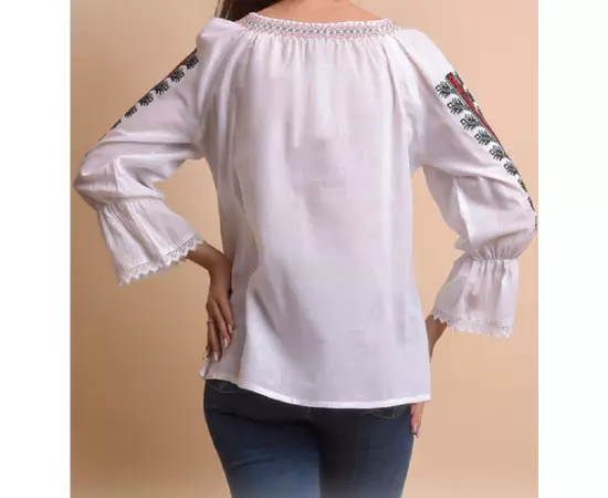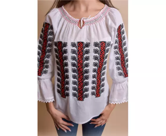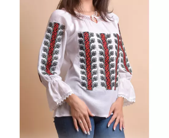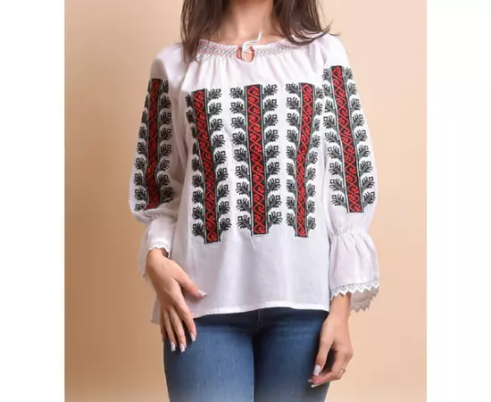Bluza Tip Ie Alba cu Motiv Geometric Rosu - BMG75