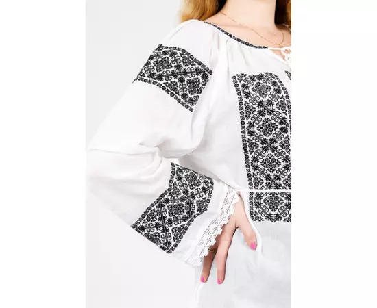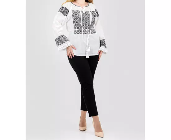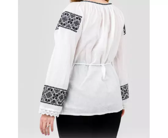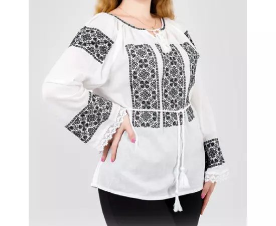 Bluza Tip Ie Alba cu Motiv Geometric Negru - BMG84