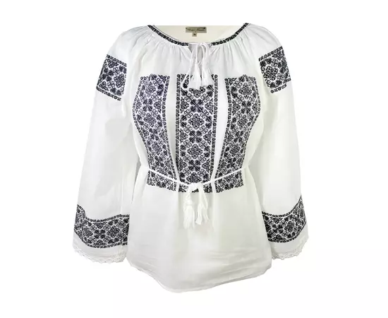 Bluza Tip Ie Alba cu Motiv Geometric Negru - BMG84