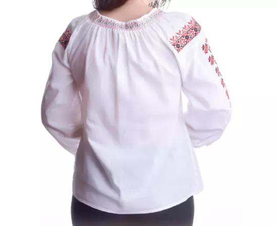 Bluza Tip Ie Alba cu Motiv Geometric Rosu - BMG64