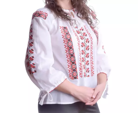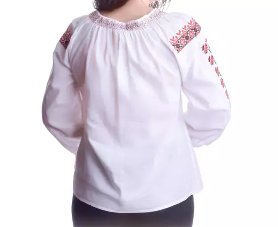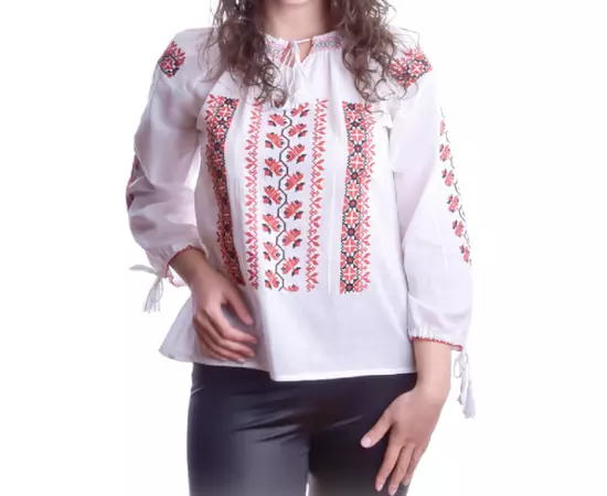 Bluza Tip Ie Alba cu Motiv Geometric Rosu - BMG64