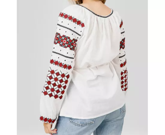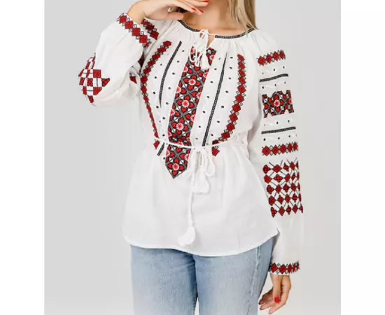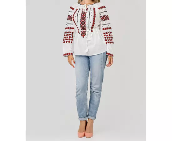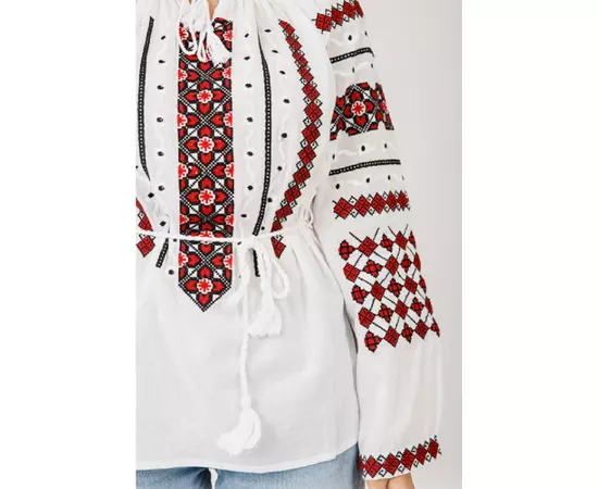 Bluza Tip Ie Alba cu Motiv Geometric Rosu - BMG79