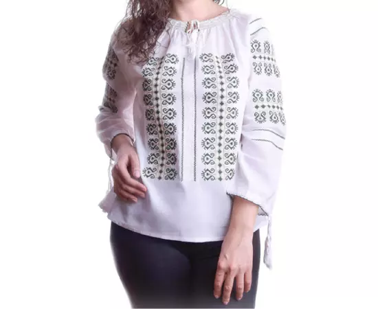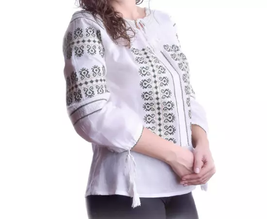 Bluza Tip Ie Alba cu Motiv Geometric Verde - BMG60
