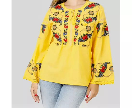 Bluza Tip Ie Galbena cu Motiv Floral Multicolor- BMG07