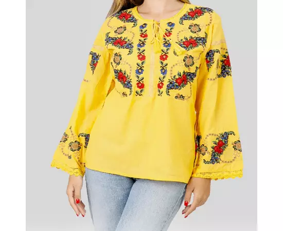 Bluza Tip Ie Galbena cu Motiv Floral Multicolor- BMG07
