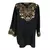 Bluza Tip Ie Neagra cu Motiv Floral Auriu