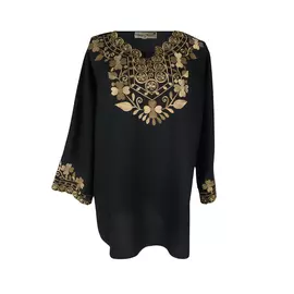 Bluza Tip Ie Neagra cu Motiv Floral Auriu - BMG08
