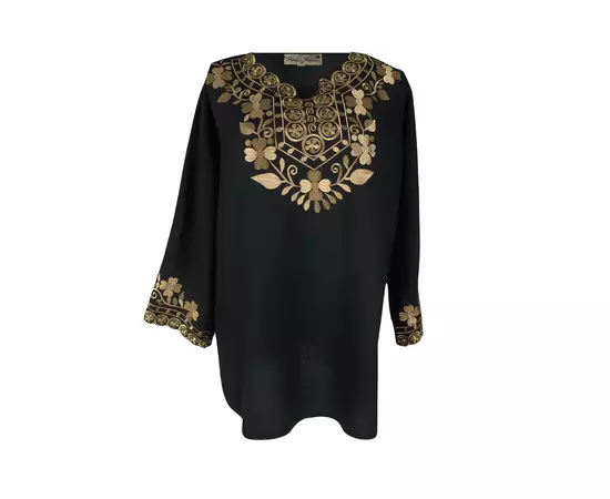 Bluza Tip Ie Neagra cu Motiv Floral Auriu - BMG08