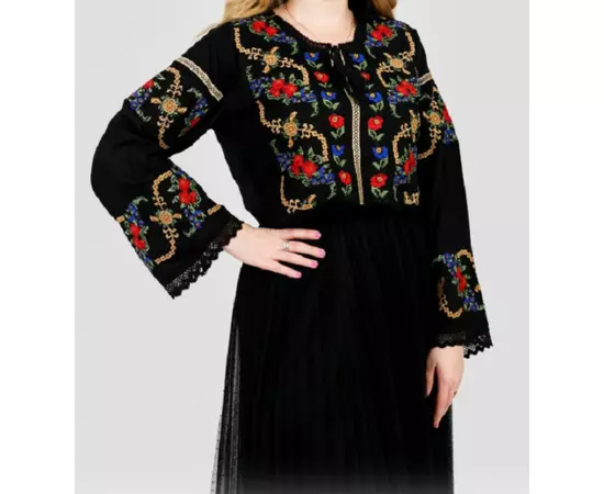 Bluza Tip Ie Neagra cu Motiv Floral Multicolor - BMG03