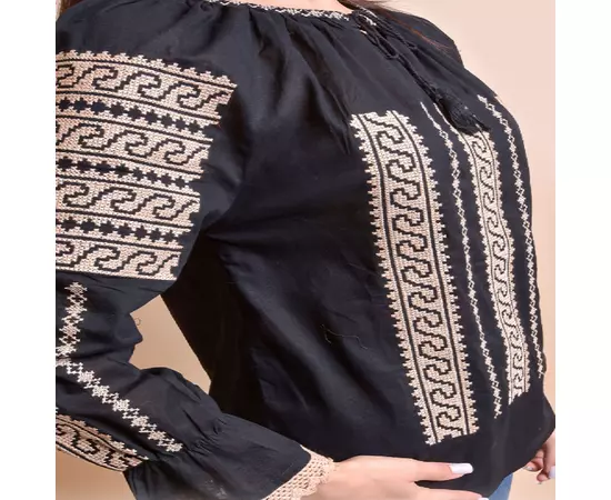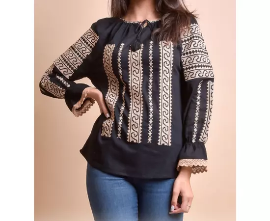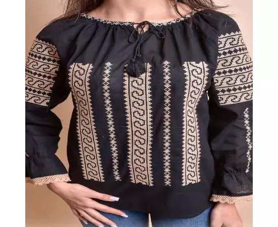 Bluza Tip Ie Neagra cu Motiv Geometric Crem - BMG13