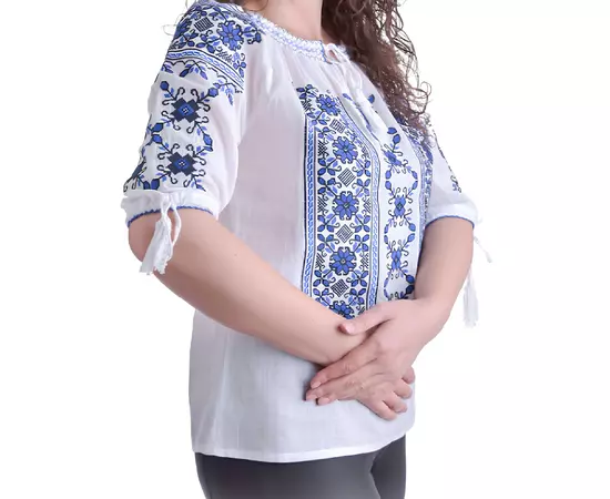 Bluza Tip Ie Traditionala Alba cu Motiv Floral Albastru de Dama - IMS48