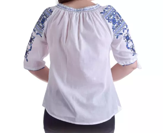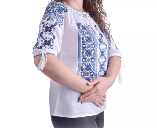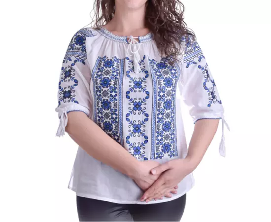 Bluza Tip Ie Traditionala Alba cu Motiv Floral Albastru de Dama - IMS48